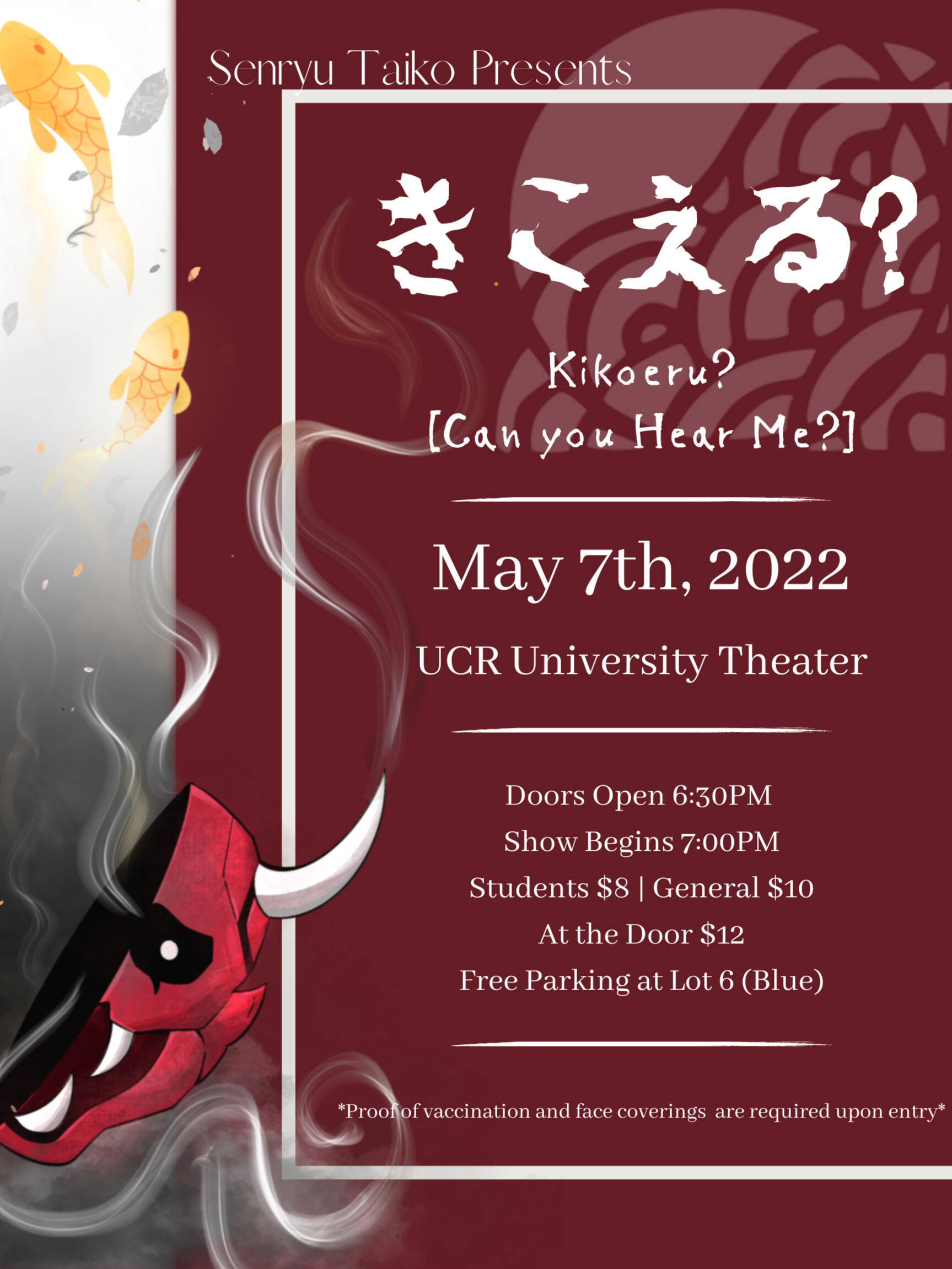 the voices and the lived experiences of those who are playing themThis year, in their 13th annual Spring Concert, Senryu Taiko would like to present “Kikoeru? きこえる?” to empower the voices of the Asian American & Pacific Islander (AAPI) community and combat the stereotypes that are embedded into our lives. Self-taught and self-sustained, Senryu Taiko would like to create a space for representation and social justice for minorities in the United States with our music.